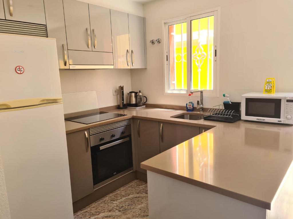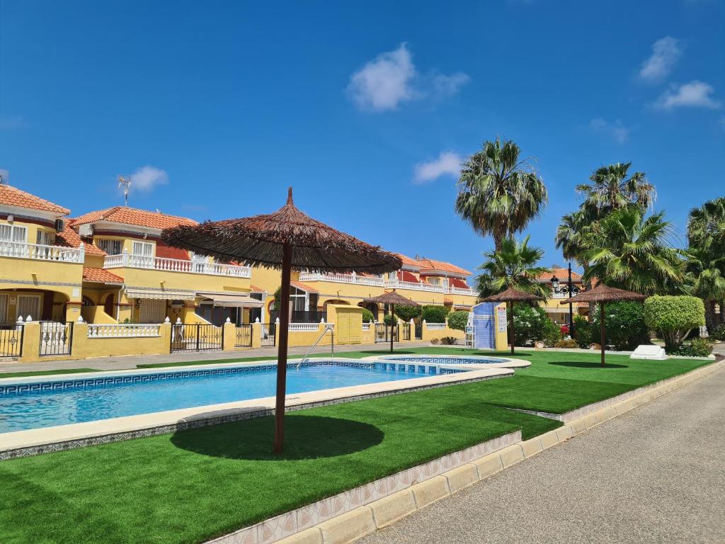 La propiedad en sí cuenta con 2 dormitorios amplios, ideales para parejas o familias pequeñas que deseen tener su propio espacio. La distribución de la vivienda es funcional y moderna, con una cocina abierta al salón-comedor que crea un ambiente luminoso y acogedor. Además, la propiedad suele contar con terraza o balcón con vistas a los jardines o a la piscina, lo que permite disfrutar del buen clima y del entorno natural de la urbanización.