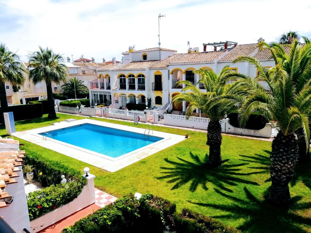 Esta encantadora casa de 2 dormitorios se encuentra en Torrevieja, a solo 1 km de la playa de la costa mediterránea de España. Con una piscina compartida, un jardín amueblado y conexión wifi, es el lugar ideal para disfrutar de unas vacaciones relajantes en el sol español. La casa está completamente amueblada y equipada con todas las comodidades para que te sientas como en casa durante tu estancia.
